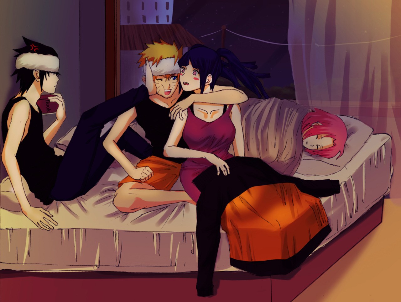 Naruto and Hinata Sasuke and Sakura in bed