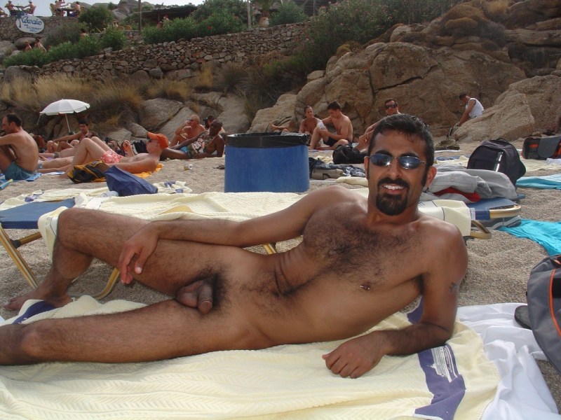A lot of naked men on the beach