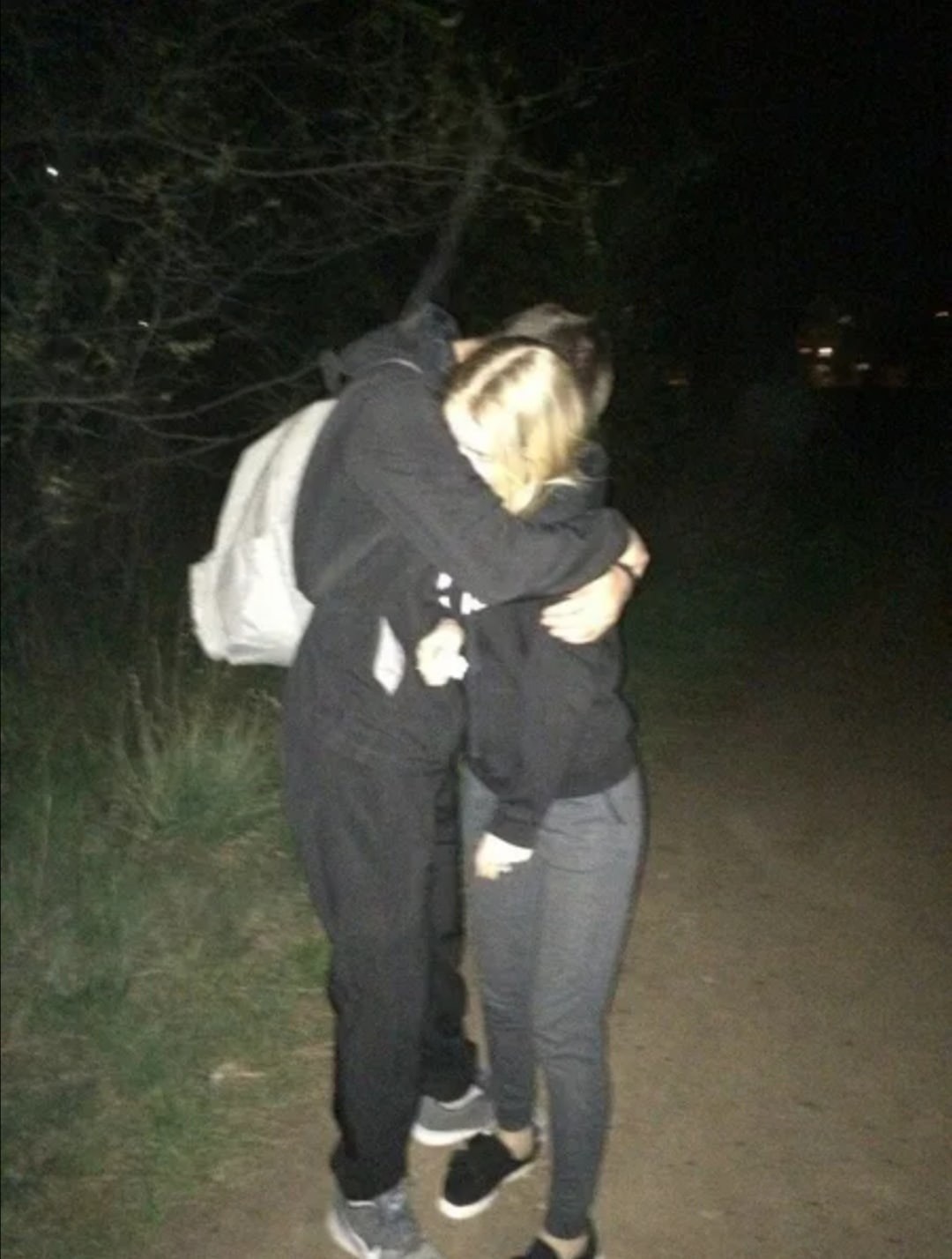 A guy with a girl without a face in the dark