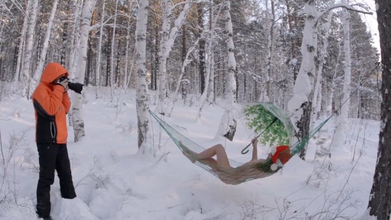 Naked Liana Klevtsova in the winter forest