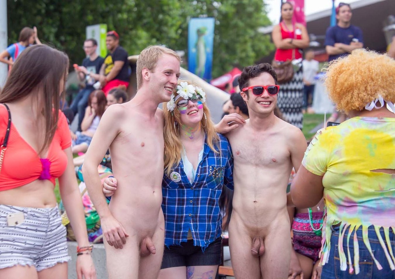 Naked men and women together
