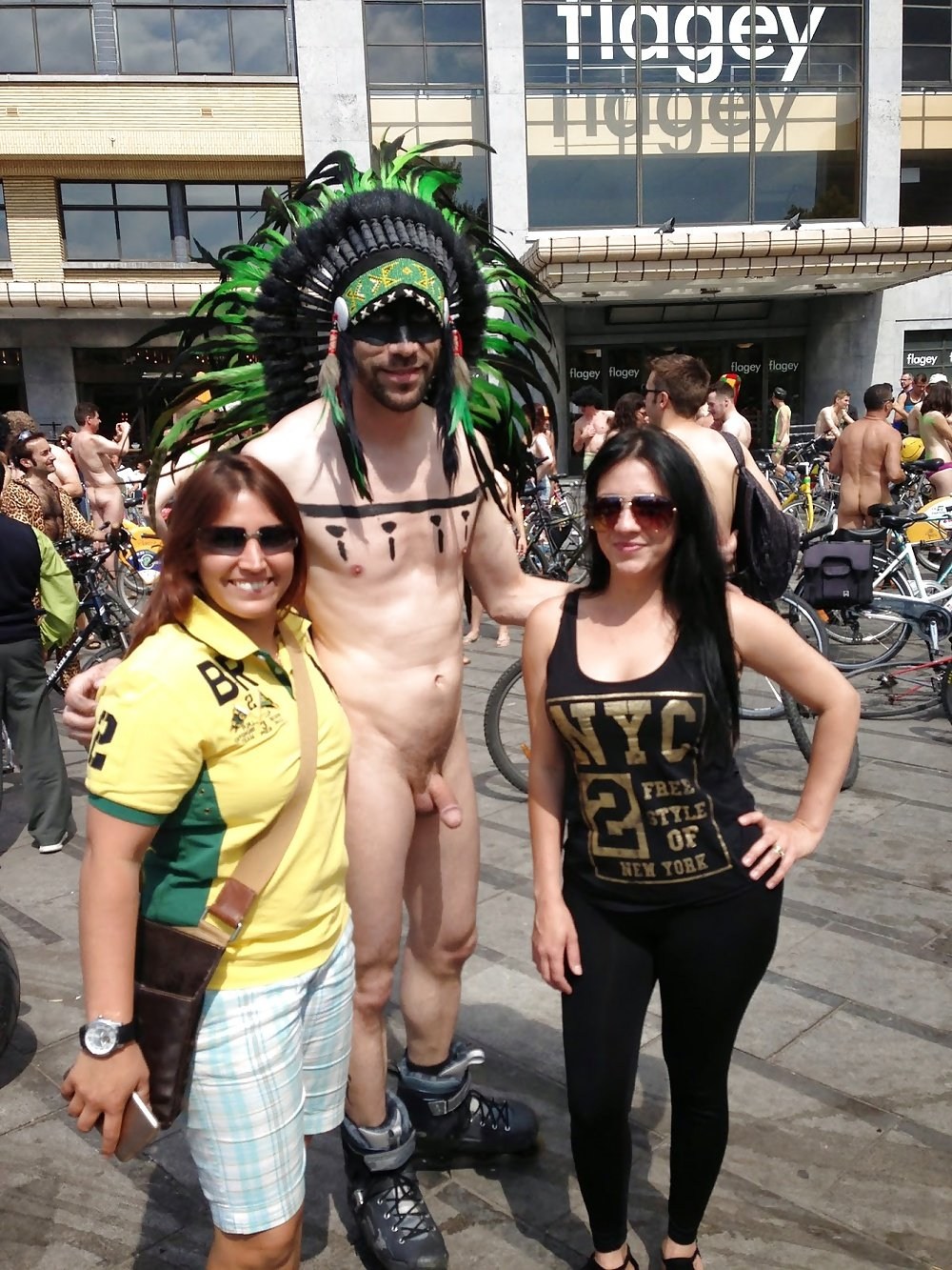 Naked men in front of women