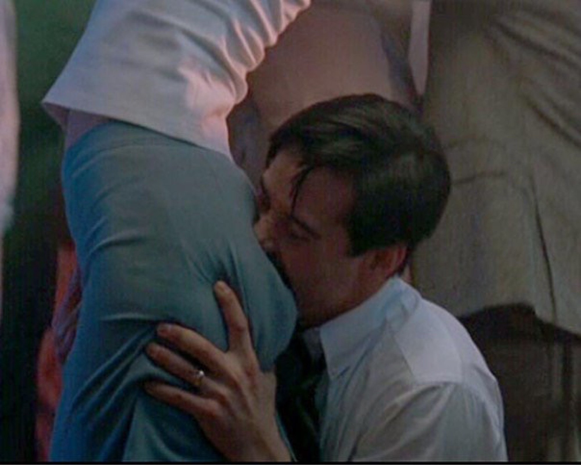 A man kisses a woman in the ass