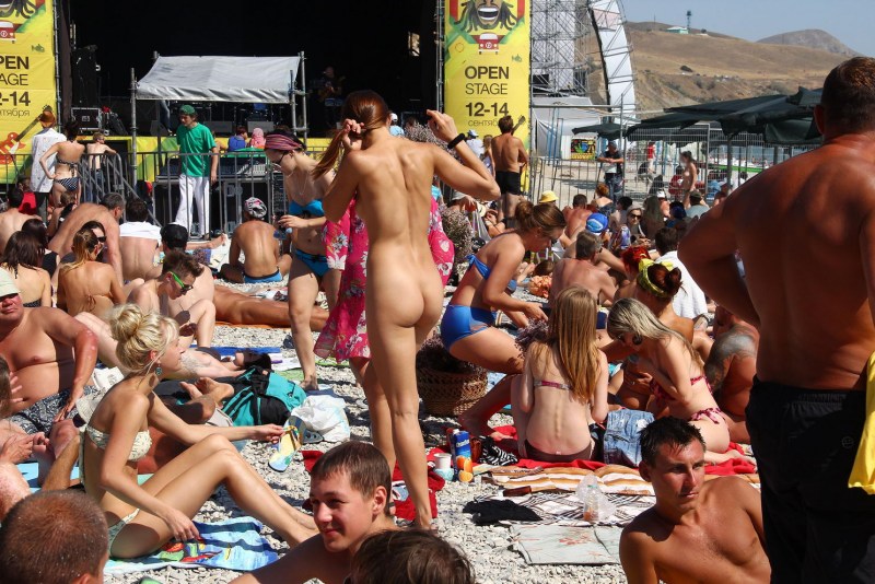 Naked women in crowded places