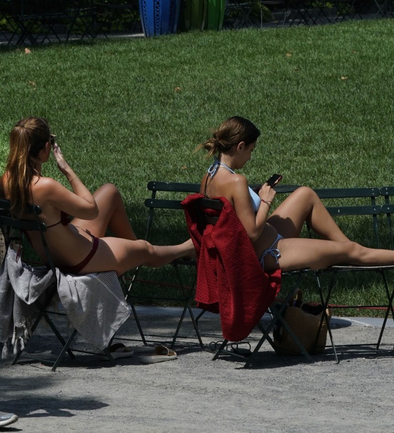 They sunbathe in the park