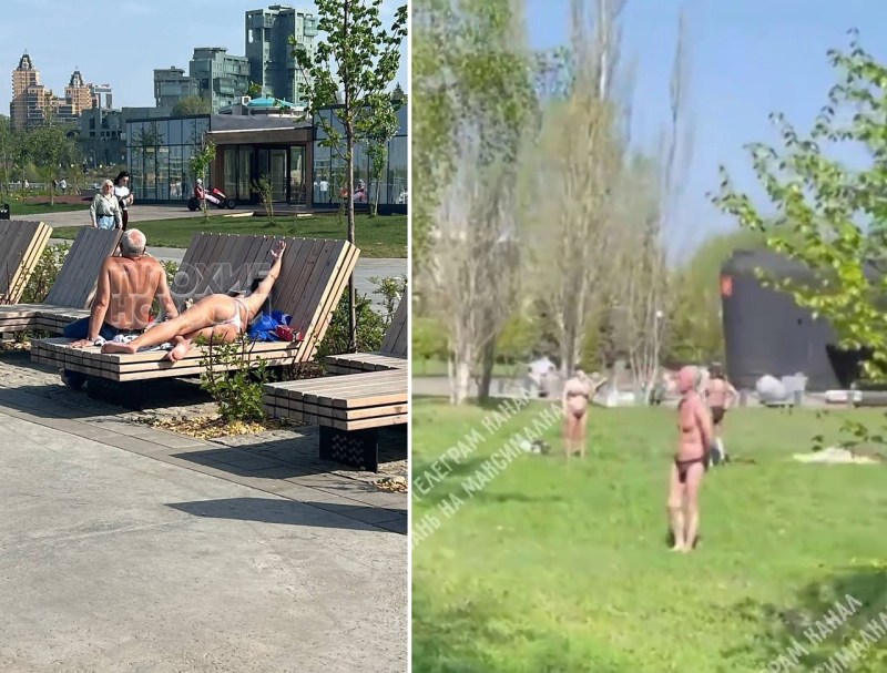 Sunbathing in Moscow parks naked