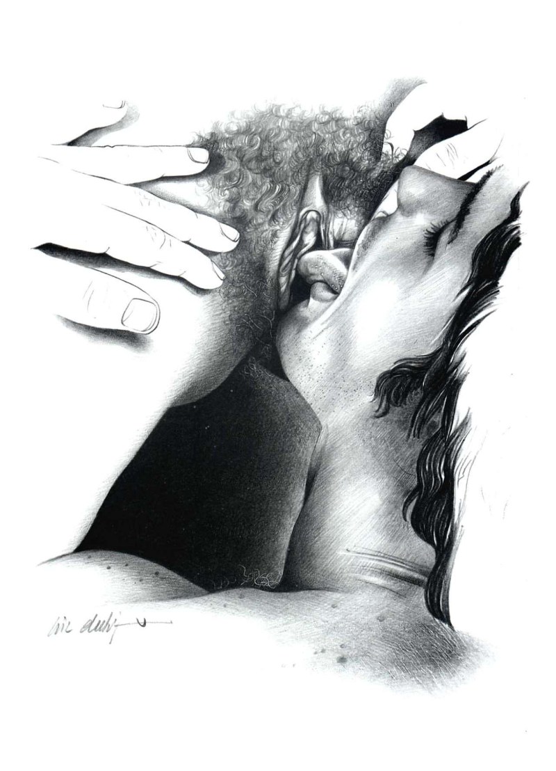 Cunnilingus drawing with a pencil