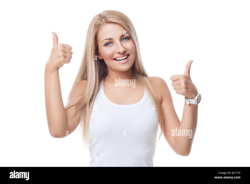 The woman shows the thumb up
