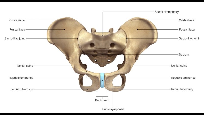 Human pelvis bones with the name